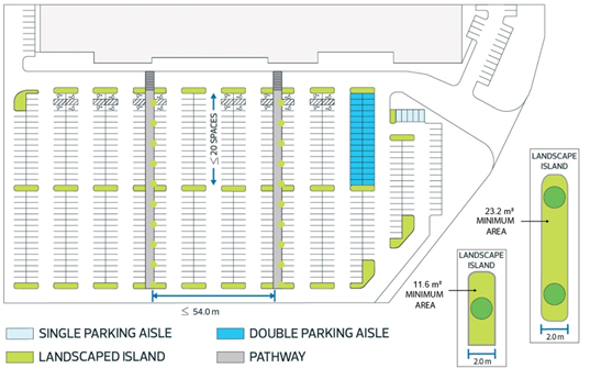 5.41.2. For buildings larger than 2,000.0sq m the developer shall provide a sidewalk from the building doors to the nearest drive aisle, for the length of that drive aisle.